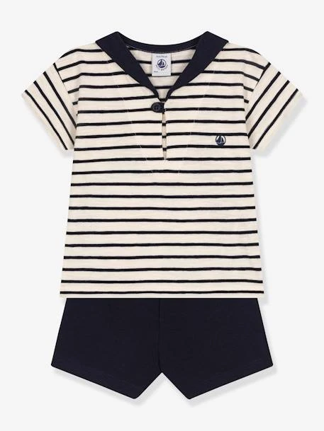 Un ensemble short et t-shirt esprit marin avec les rayures signatures de la marque Petit Bateau ! On craque pour ce look chic et confortable !