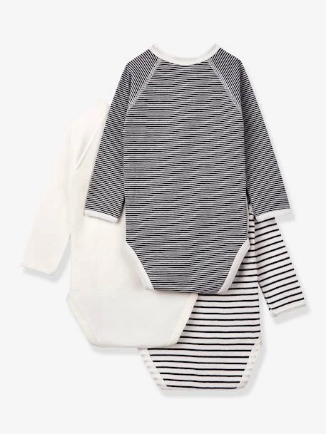 - Lot de 3 bodies croisés rayés assortis en coton bio PETIT BATEAU