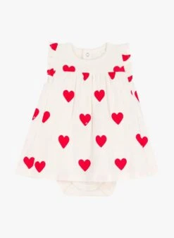 PETIT BATEAU Robe Courte Col Rond Imprimée Coeur En Coton | Orange