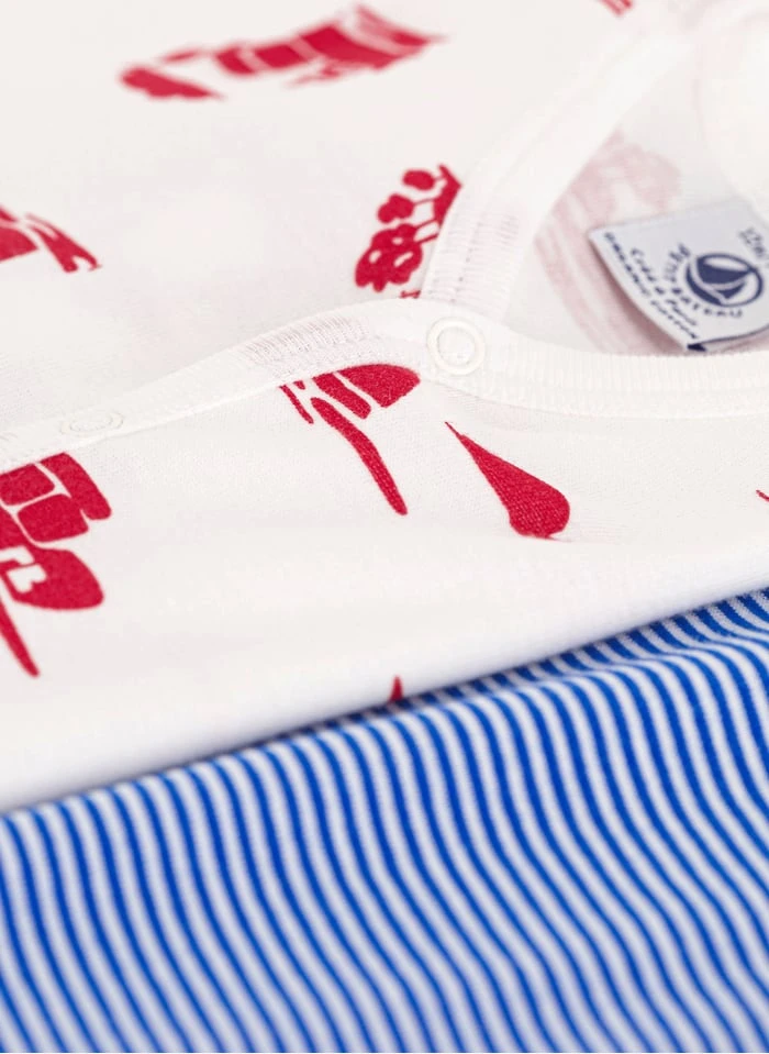 Lot de 2 combinaison courtes en coton bio by Petit Bateau.
