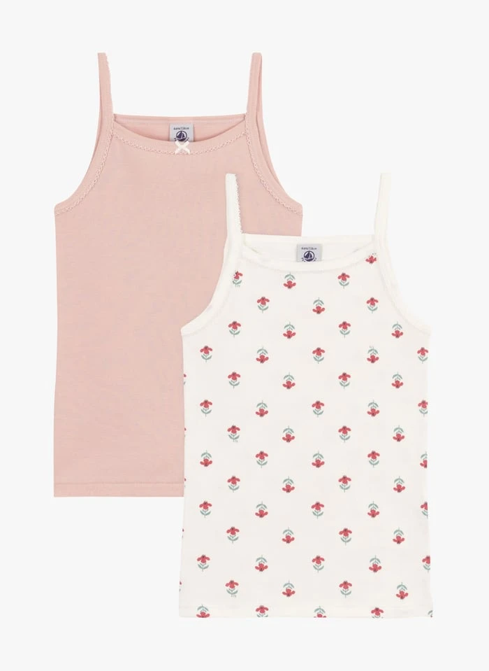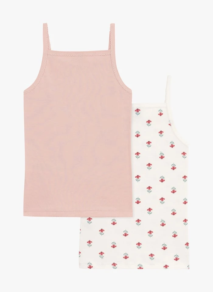 Lot de 2 débardeurs fleurs en coton bio by Petit Bateau.