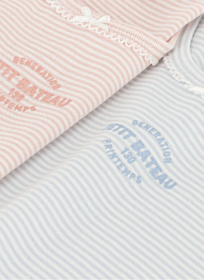 Lot de 2 tee-shirts col rond rayés en coton by Petit Bateau.