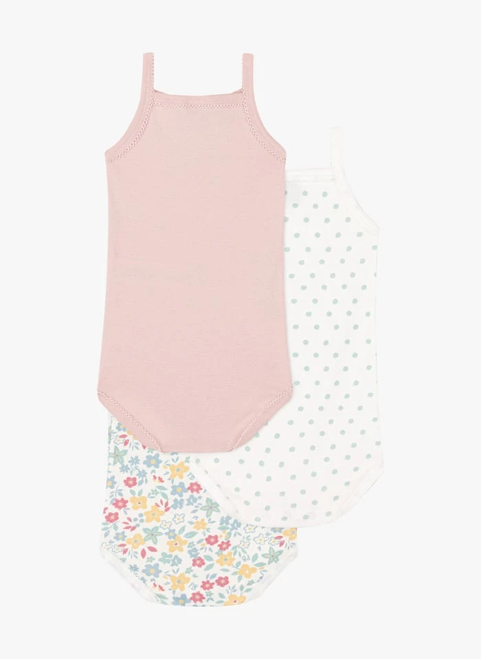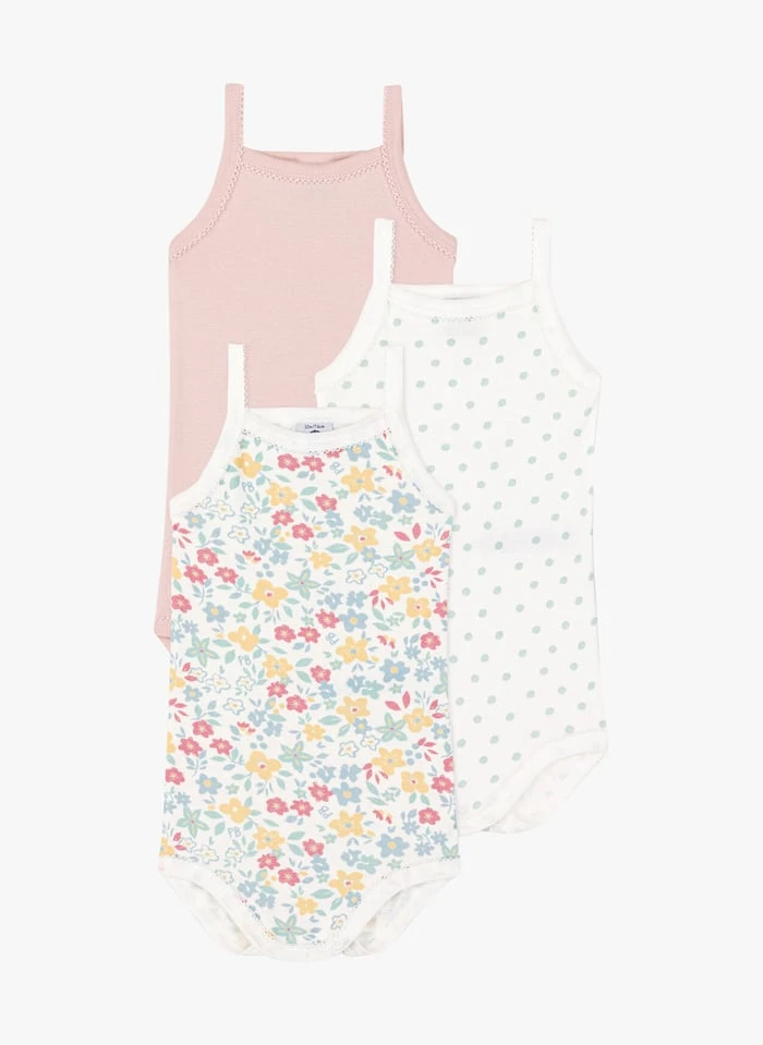Lot de 3 bodies imprimés en coton by Petit Bateau.