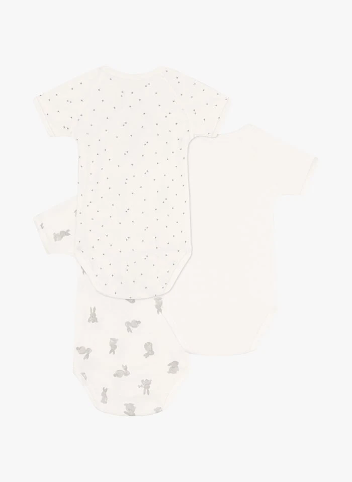 Lot de 3 bodies lapins en coton bio by Petit Bateau.