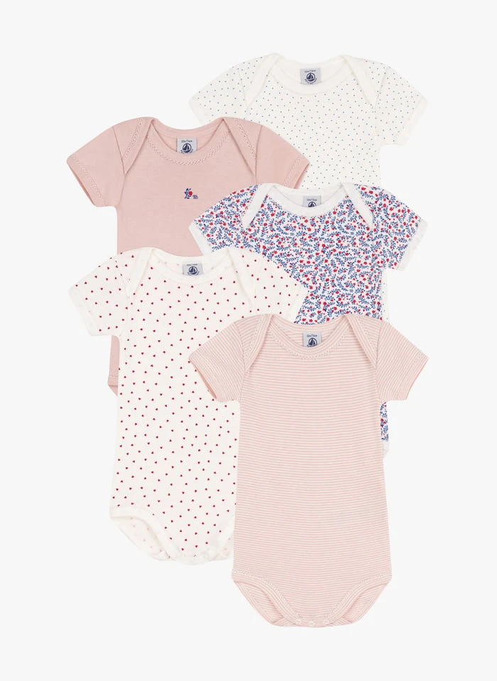 Lot de 5 bodies imprimé en coton by Petit Bateau.