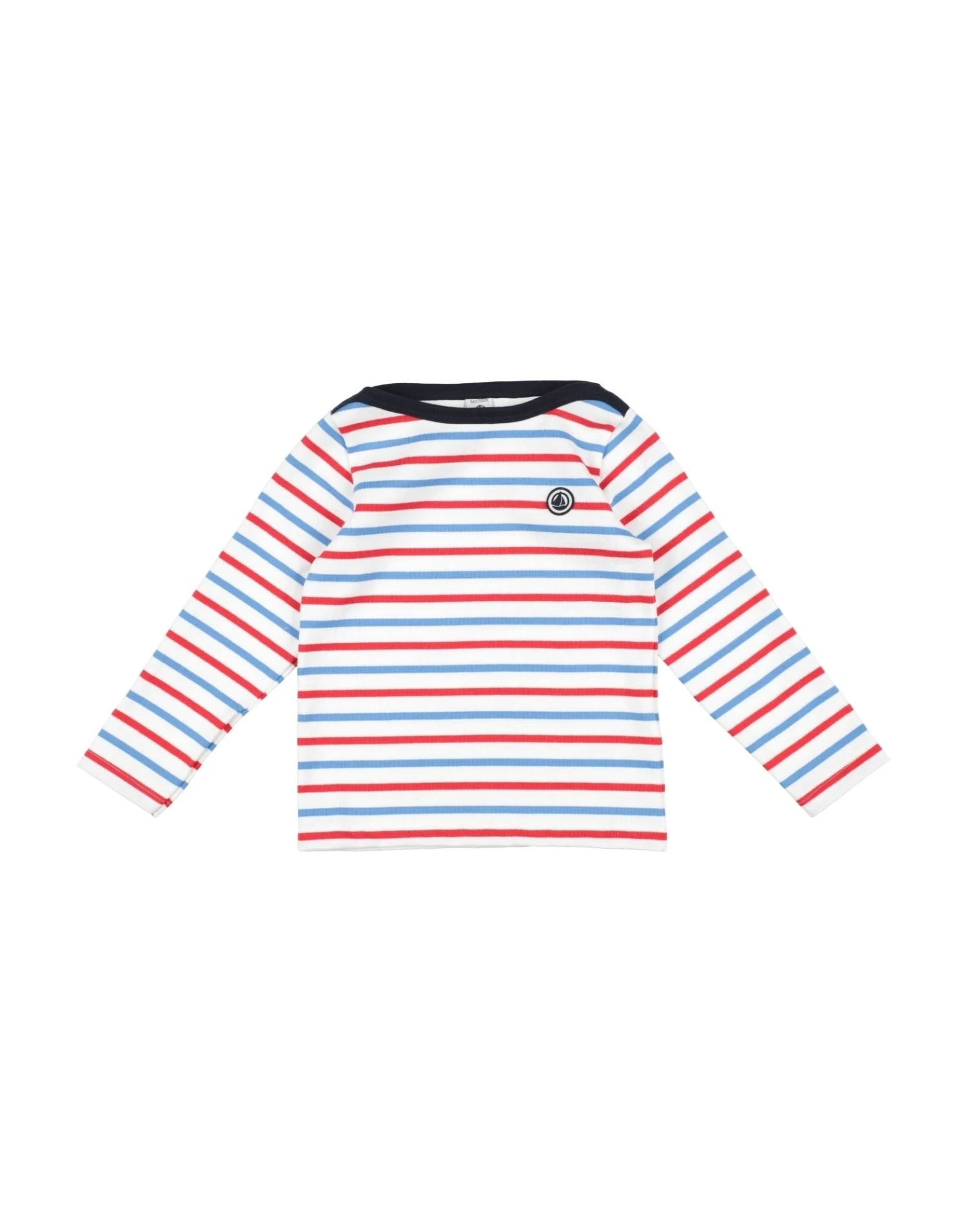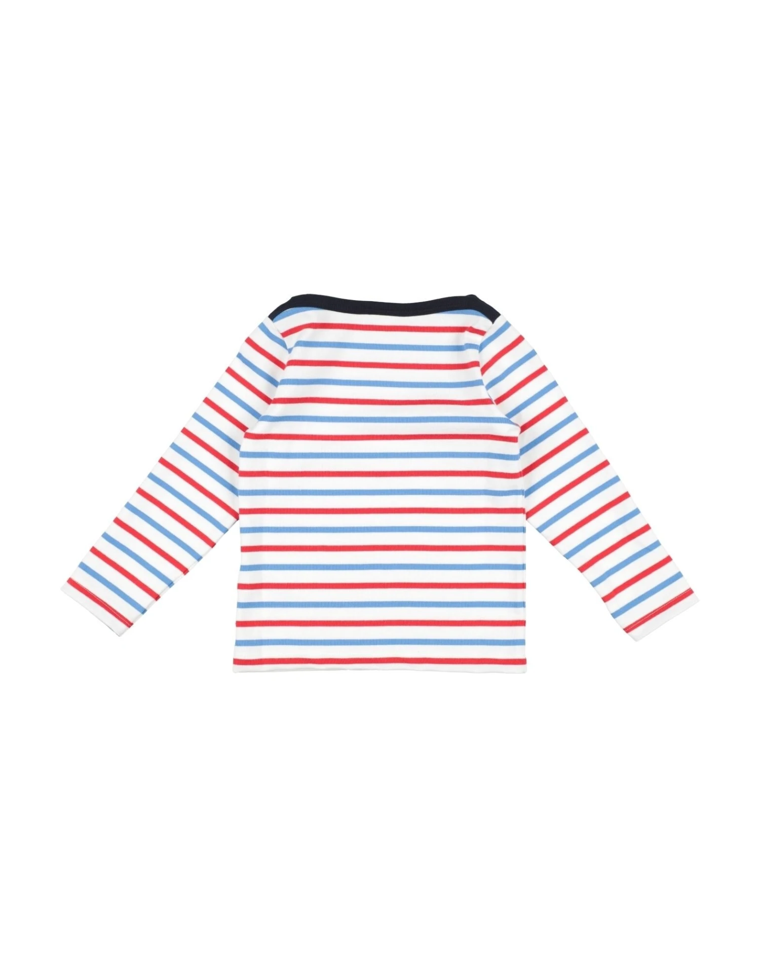 maille, maille légère, logo de la marque, rayures, col rond, manches longues, sans poche, laver à 30°, non lavable à sec, ne pas utiliser de javel, ne pas sécher en machine, repasser à max 110°