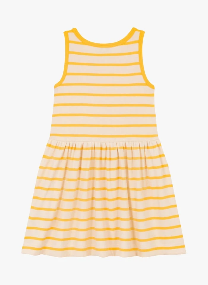 Robe courte col rond à rayures en coton by Petit Bateau.