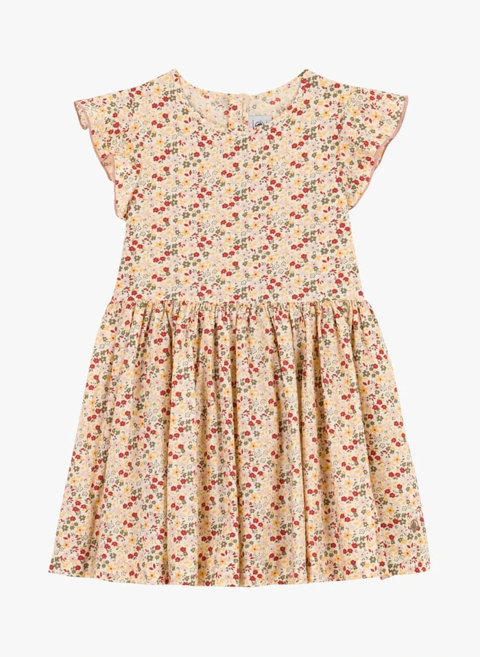 Robe courte col rond en coton à imprimé fleuri by Petit Bateau.