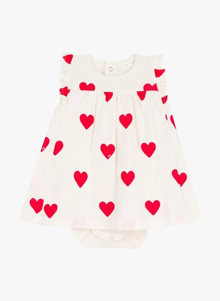 Robe courte col rond imprimée coeur en coton by Petit Bateau.